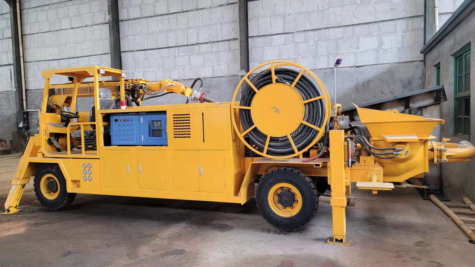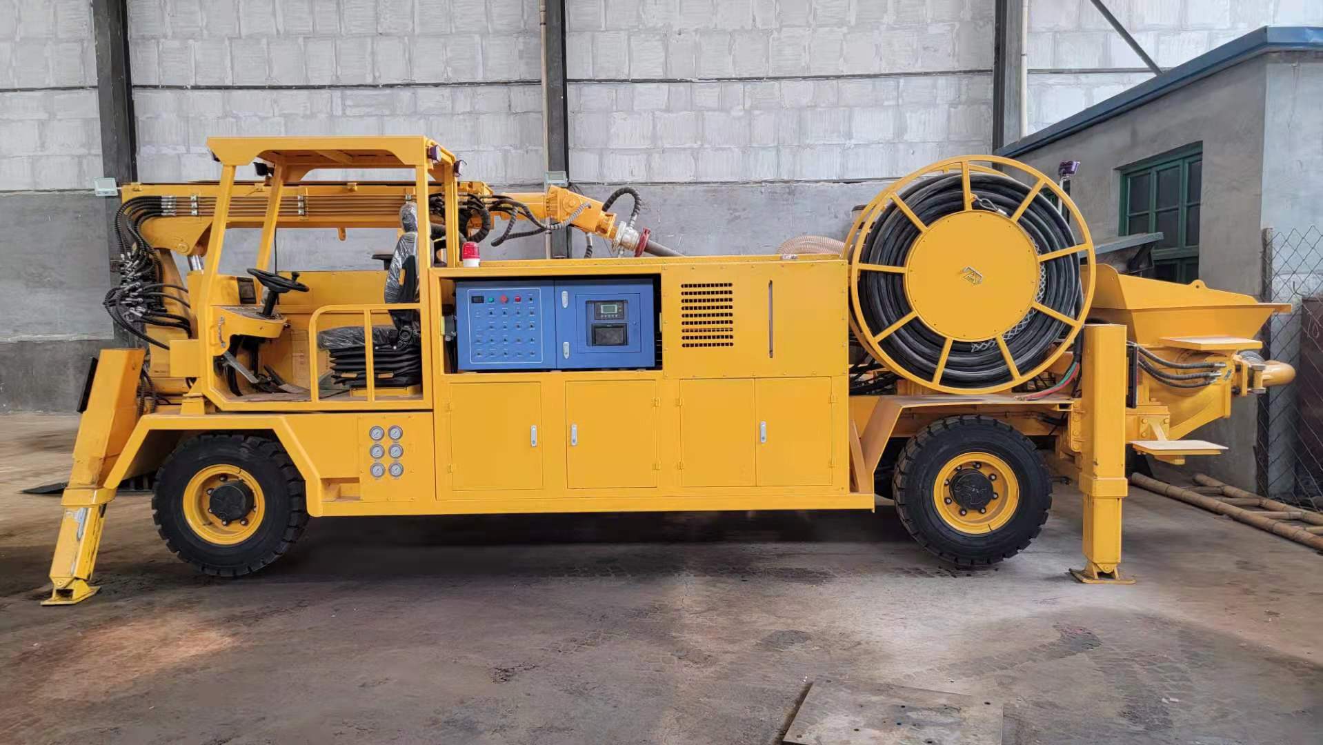 3) 速凝劑添加系統(tǒng)采用軟管泵,流量大、壽命長(zhǎng)、可靠性好。可根據(jù)需要調(diào)節(jié)比例,外加劑的摻量和混凝土泵送輸量均可通過工控屏或遙控器實(shí)時(shí)監(jiān)控和調(diào)節(jié)。