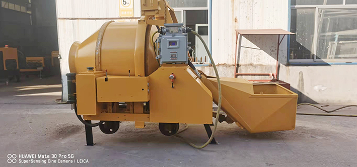 JZC型礦用攪拌機(jī)是一種自落式雙錐反轉(zhuǎn)出料攪拌機(jī),攪拌筒由齒圈傳動(dòng),工作時(shí)正轉(zhuǎn)攪拌,反轉(zhuǎn)出料,可攪拌塑性和半干硬性混凝土,適用于一般煤礦巷道鋪地硬化、水溝砌筑、基礎(chǔ)澆灌等工程;主要由上料機(jī)構(gòu)、攪拌機(jī)構(gòu)、液壓系統(tǒng)、電氣系統(tǒng)、底盤機(jī)構(gòu)等組成。