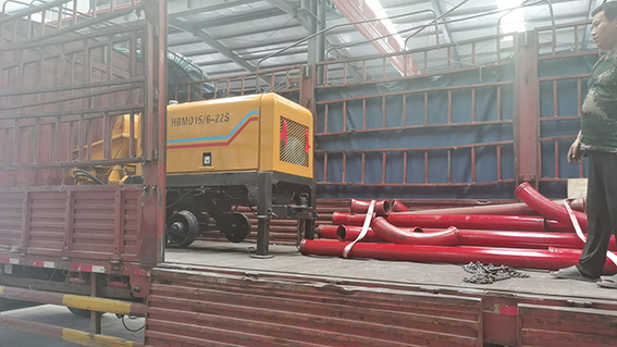 混凝土輸送泵應安放在堅實平整的地面,放下支腿,將機身安放平穩(wěn)。